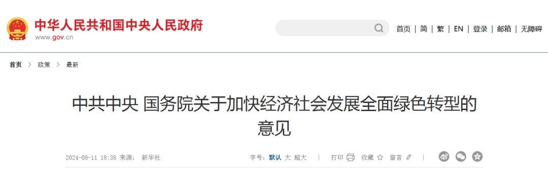 中共中央 国务院关于加快经济社会发展全面绿色转型的意见