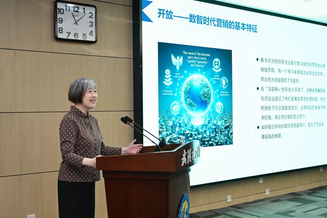 武汉理工大学管理学院刘明菲教授以《数智时代国际市场营销变革与创新》为题,从数智时代国际市场营销特征及要素、数智时代建材行业国际市场营销变革、数智时代国际市场营销创新实践、数智时代国际市场营销风险防范等四方面进行了讲授。
