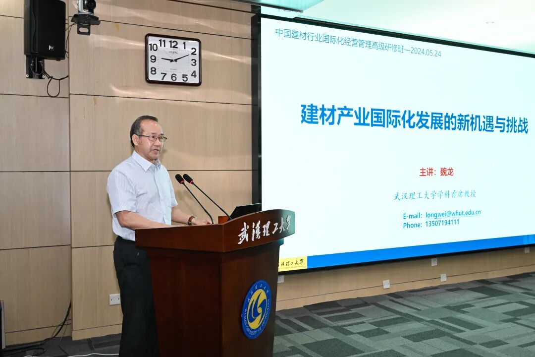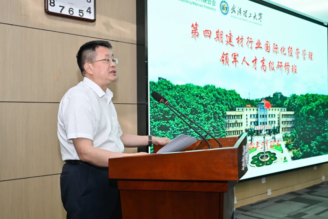 武汉理工大学副校长麦立强在开课致辞时首先代表学校感谢中国建筑材料联合会信任,将此阶段的课程安排在武汉理工大学,对研修班各位学员的到来表示热烈欢迎。他表示,学校始终坚持立足行业、依托行业、服务行业,办学126年来与建材建工行业密不可分,多年的相互支撑、相互成就,共同打造了行业与学校共融共兴的合作典范,学校将始终坚持以特色创优势的发展道路,更好服务建材行业发展,为实现“宜业尚品、造福人类”建材行业发展目标作出学校应有的贡献。他认为,建材行业国际化经营管理领军人才高级研修班,不仅对加强建材行业复合型国际化人才培养,助力建材行业在更高水平的对外开放中实现更好发展具有重要作用;更是对拓展建材行业国际化发展新视野,提升建材行业国际化水平与中国建材国际品牌影响力具有重要意义。