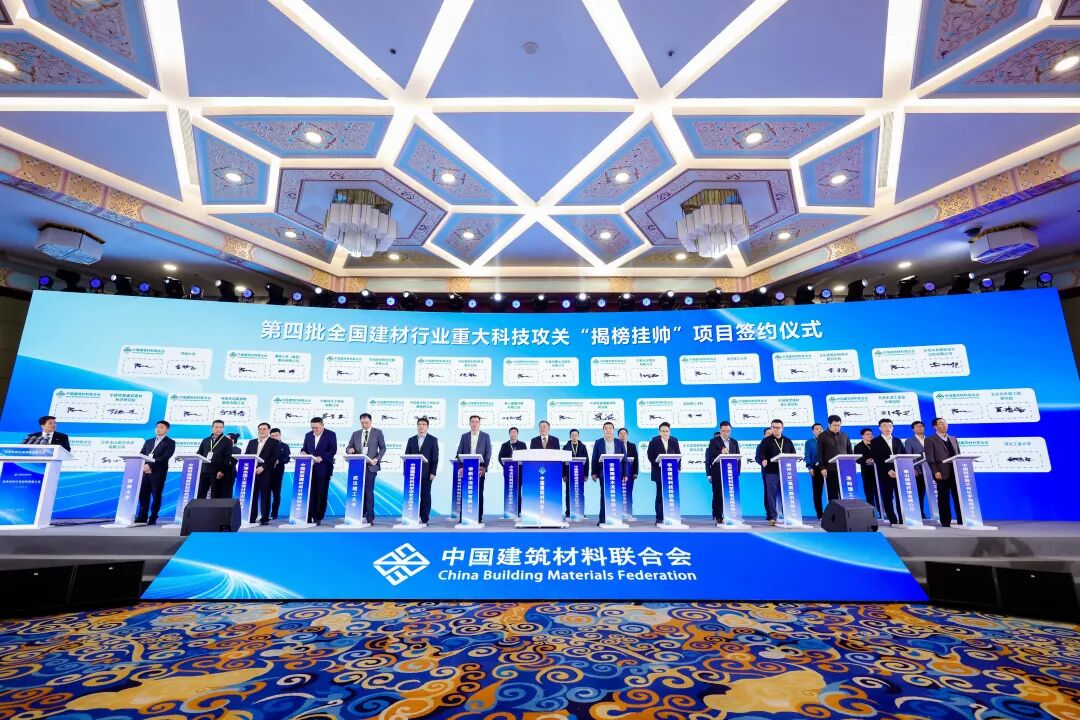 大会还举行了第四批全国建材行业重大科技攻关“揭榜挂帅”项目揭榜单位签约仪式。2024年联合会重点聚焦建材行业重大技术装备制造、“六零工厂”等重点领域,发布了第四批“揭榜挂帅”项目榜单,共设20个方向。经联合会组织专家评审,共有29个团队成功揭榜。陈国庆代表联合会与揭榜单位代表签约。