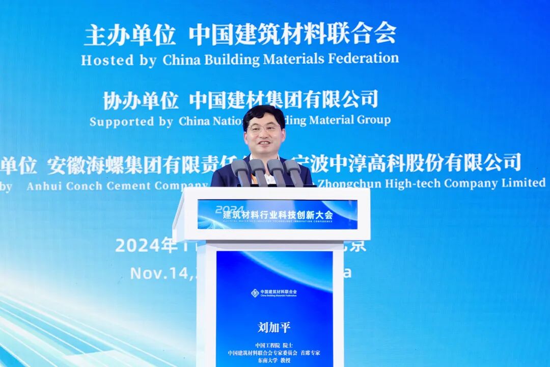 11月14日,2024建筑材料行业科技创新大会在2024年建筑材料行业大会期间召开。工业和信息化部高新技术司副司长柏杰,中国建筑材料联合会会长阎晓峰、常务副会长陈国庆,联合会执行副会长、华新水泥股份有限公司总裁李叶青,中国工程院院士姜德生,联合会副会长、中国工程院院士缪昌文,联合会副会长、中国工程院院士彭寿,中国工程院院士刘加平,联合会驻会领导张东壮、张广沛、贺军、商雁青、孙星寿,不驻会副会长李新华、邱风雷、王家安、张岚嵘、印志松、黄再满、孔祥忠、齐子刚、张佰恒、屈交胜、晋占平、徐洛屹、曾令荣、缪斌、潘东晖、王耀、付红旗、孙凯文、胡幼奕,联合会理事会常务理事、理事、会员单位,以及建材有关行业协会、省区市协会、重点企业、科研院所、高校、联合会系统各单位代表共计450余人出席大会。会议由中国建筑材料联合会副会长刘建华主持。
