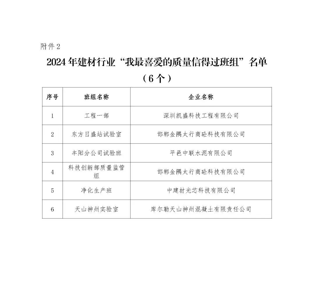 2. 2024年建材行业“我最喜爱的质量信得过班组”名单