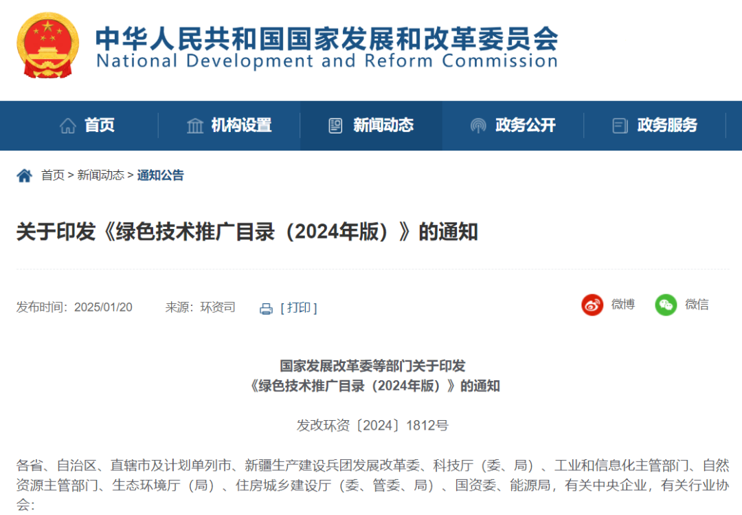 国家发改委等部门印发《绿色技术推广目录(2024年版)》