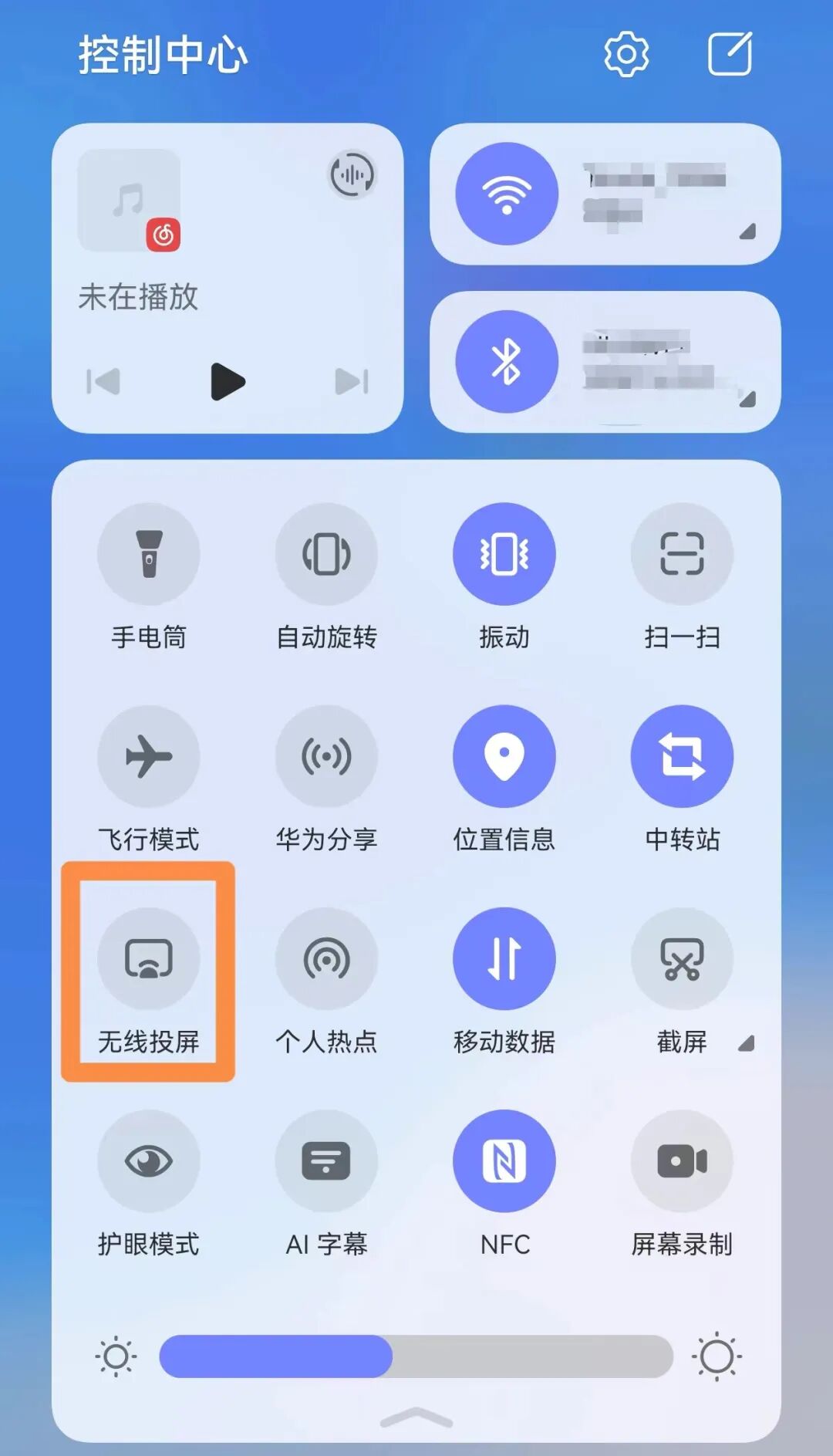 1.打开电视和手机,使电视和手机连接在同一wifi环境下。2.打开手机,在“控制中心”找到”无线投屏”或“手机投屏”(设备不同名称不同)。