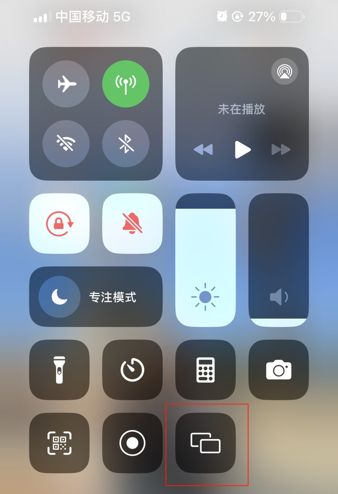 2.打开手机,在“控制中心”找到”屏幕镜像”。